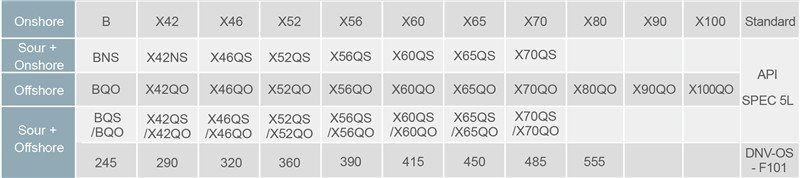 - API X100Q for oil, gas, water and slurry services;